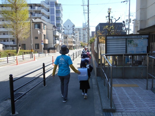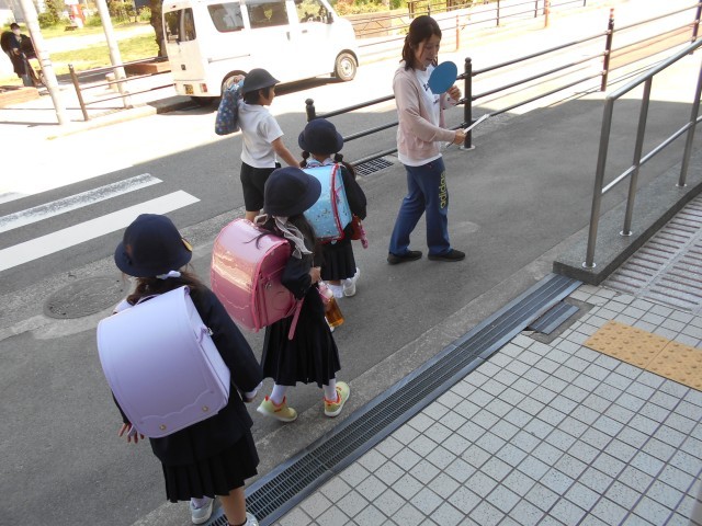 近くに住んでいる人たちと一緒に、先生が引率して下校します。