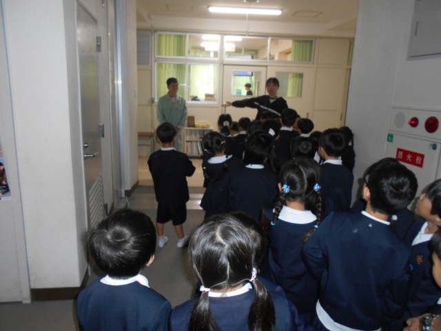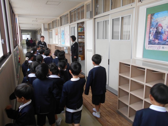 校舎内をまわり、図書室や音楽室、保健室などがどこにあるのかを知りました。