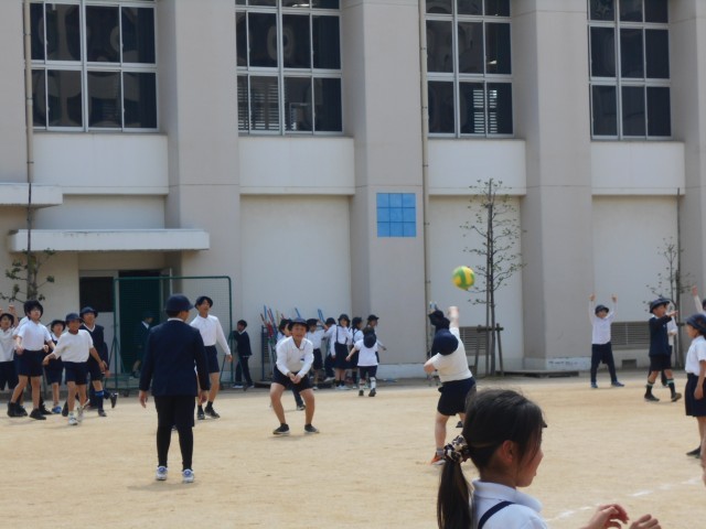 タンポポの綿毛を飛ばしたり、理科の観察の続きをしたり、ドッジボールをしたり様々です。