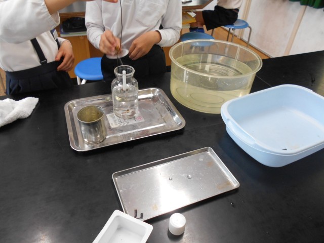 物を燃やす働きあがる気体を見つける実験をしました。