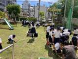 休み時間に入ると、1年生・2年生が遊具に遊びに出てきました。 稲づくりとジャ...