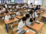 1年生の算数の時間。 こころの天気をした後、算数のデジタルドリルに取り組みま...