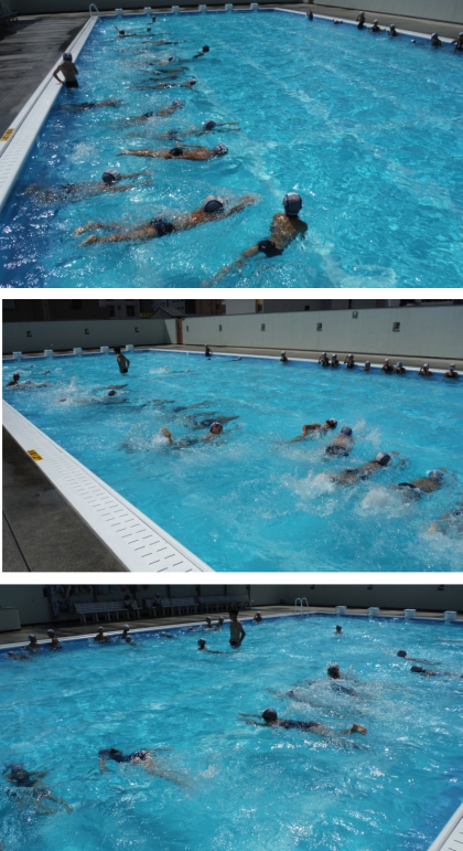 今日は泳力テスト。それぞれの目標に向かって一生懸命泳いだ。25m泳ぎ切った子,クロールに加えて平泳ぎでも25m泳いだ子,クロール・平泳ぎで50m泳いだ子,平泳ぎ・クロールの50mタイムにチャレンジした子…それぞれの思いが達成できたかな。
