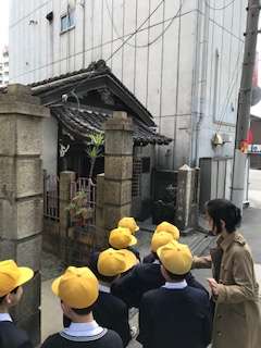 6年生の社会科は「地域の歴史調べ」からスタートです。校区内にある建造物や石碑を見学に行きました。