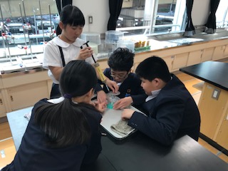 ものを燃やした後の酸素や二酸化炭素の濃度を測定しました。気体検知管の使用方法もしっかりマスターできました。