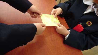 二年生が昨年度育てた朝顔のたねを、一年生の入学のお祝いにプレゼントしました。