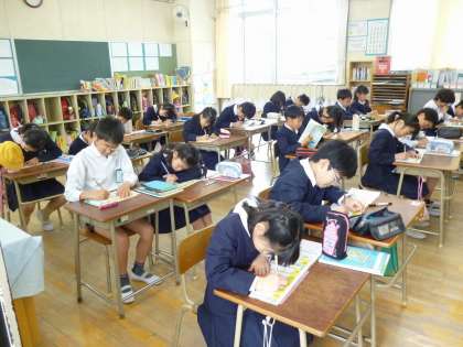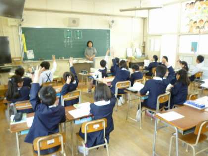 国語、漢字の学習、先生の質問にもしっかり答え、頑張って授業を受けています。