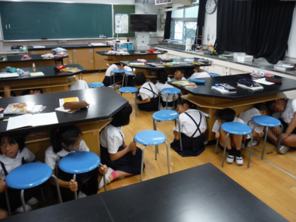 それに合わせ,それぞれの学年が学習している活動場所で自らの命を守る行動をとりました。