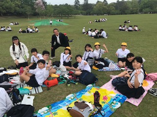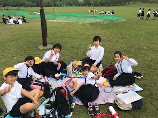 各班でのオリエンテーリングも終わりいよいよお弁当タイムです。感謝の気持ちをもって食べましょう。