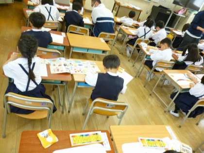 集中してたまに友だちの作品も気になりながらも、横目でチラチラ、、、とてもいい顔をしながら作品に取り組んでいました。