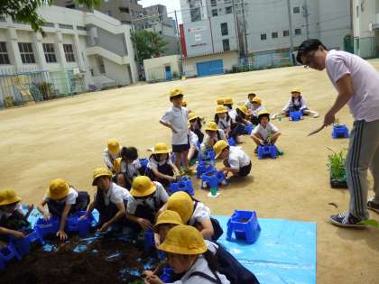 心を込めて土をぎゅっと入れるたびに先生から
