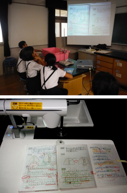 まず,昨日の理科のノートで,たくさん気づいたことや,発見したことを自分なりの言葉でかけている子どものノートを教材提示装置を使ってみんなで確認しました。工夫してノートをまとめている友だちのノートを参考にしてまとめていけるようになればいいですね。