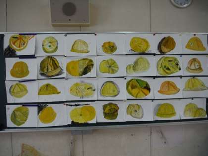 先週デッサンした通学用の黄色帽子に色を着けてみました。