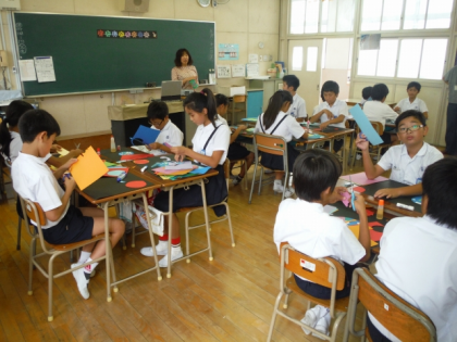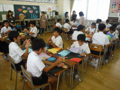 班の友だちと意見を交わしながら楽しく活動することもできました。何気ない会話のようですが,友だちにアドバイスをもらっている子もいました。