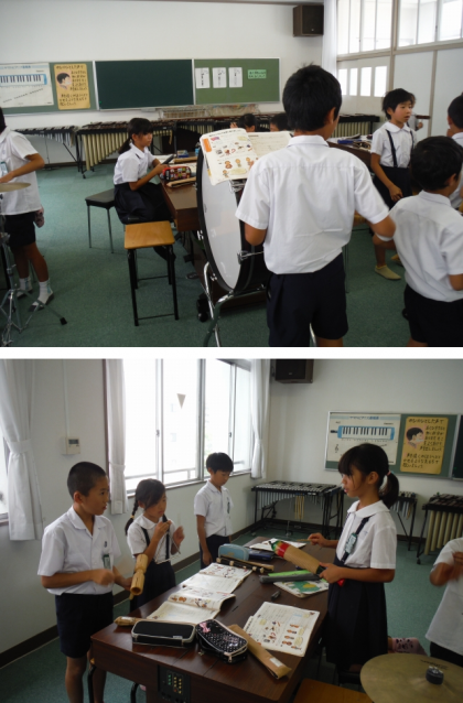 写真からも子どもたちが楽しみながら,楽器に親しむ様子が伝わってきます。