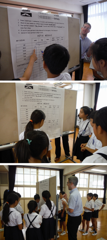 続いて,今日も『Battle ship game』をしました。子どもたちからは