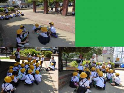 みんなで使うものを班で探し、公園の中にはたくさんみんなで使うものがあることを発見しました。
