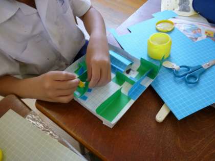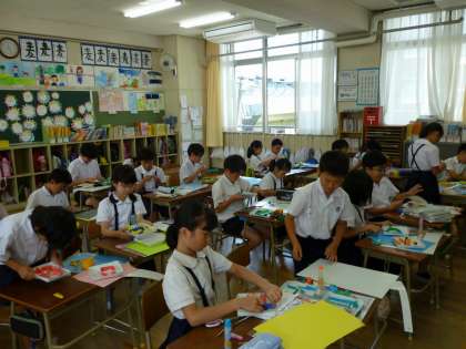 4年生は今、図工の学習で紙を使った立体工作に挑戦しています。