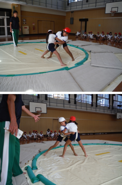 『豊崎相撲大会』が9月30日(火)に迫ってきた。今朝,全校朝会の後に土俵が設置された。