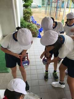 スポーツテストで握力を測定しました。集中して全力を出しましょう。