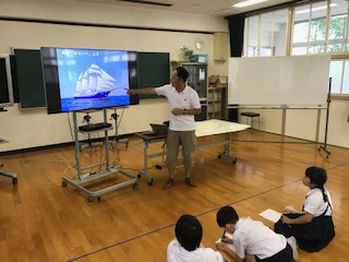 今日はその本番に向けて帆船の仕組みや海図の見方等を学習しました。分かりやすく教えて頂いたので難しい内容も6年生なりに理解できたようです。
