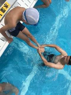 今日の水泳の授業は、北区の体力向上事業の取り組みとして、大阪プールの指導員の方にお越し頂き、平泳ぎを重点的に教えてもらいました。