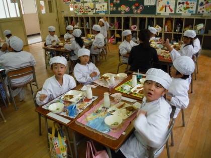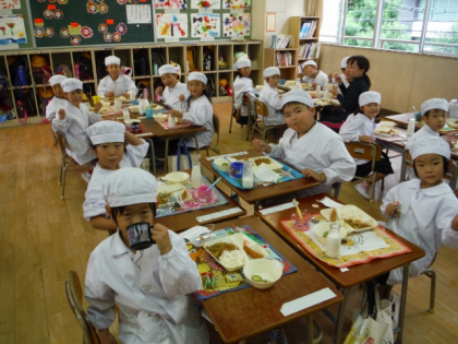 子どもたちは大喜びで,おいしそうに給食を食べていました。