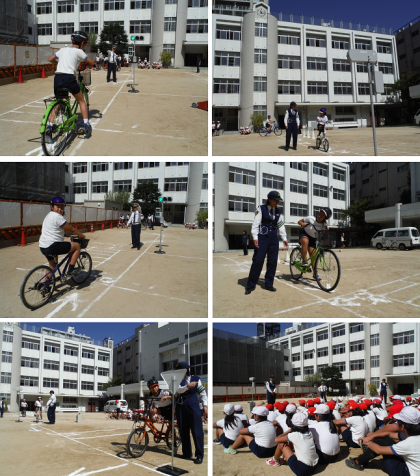 歩行のときでも,自転車でも,左右や後方を確認してから進みます。今日はポイントとなる箇所に先生やお巡りさんが立って,安全確認ができるように指示や確認をしましたが,普段の生活の中では,自分でしなくてはいけません。