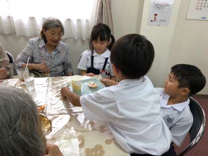 まずご挨拶をし、「世界中の子どもたちが」の合唱をしました。その後、地域のみなさんと楽しく会食し、楽しい時間を過ごすことができました。