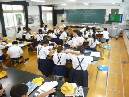 観察後は教室に戻り、撮った写真を見ながら班で見つけたことを話しました。