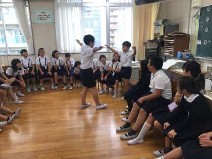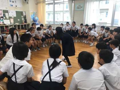 今回は残念ながら雨だったので室内遊びをしました。今日の遊びは、みんなの大好きなフルーツバスケットです。みんなでワイワイ楽しく20分休みを過ごしました。