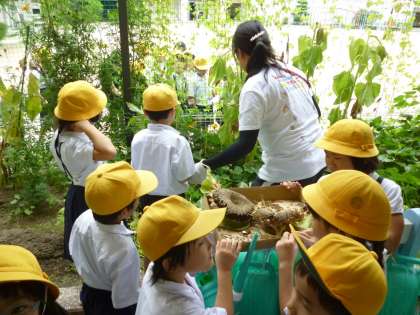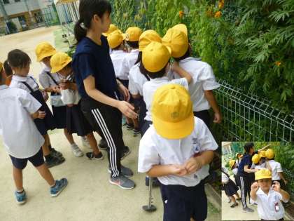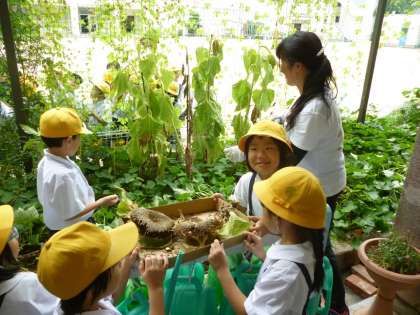 子どもたちは大はしゃぎでした。取れた種を嬉しそうに見せてくれました。
