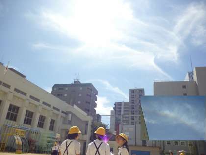 もう1時間は新しい学習単元「雲と天気」です。運動場で空を見上げ雲の様子をみました。