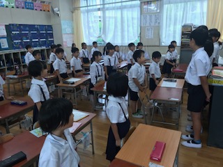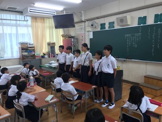 児童会では、今週をあいさつ週間として設定し「相手を見て、大きな声ではっきりと、笑顔で、姿勢良く」ということを意識することを全校に呼びかけています。