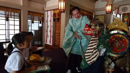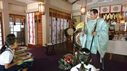 普段は触ることが出来ない貴重な神具にも触れさせて頂き、子どもたちも大興奮でした☆