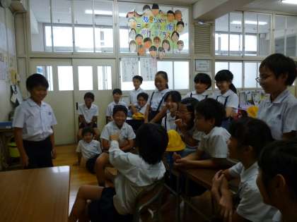 2学期から、新しく「まんざい係」ができました。休み時間に廊下でネタ合わせをして、週1回のペースで帰りの会の時に発表して、みんなを楽しませてくれています。