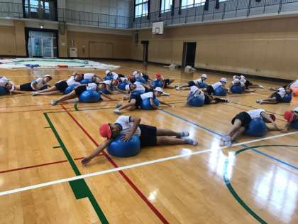 本日の児童集会で健康委員会のみんながバランスボールを使った体ほぐしの体操を教えてくれたので早速今日の体育で実践してみました!