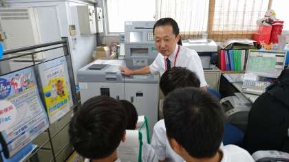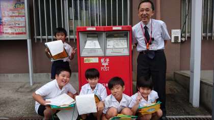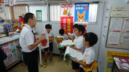 お世話になったのは「豊崎郵便局」さん。お忙しい中局長さんにお話を伺えました。その後は特別にお仕事をされているカウンターの中まで見学させて頂けました。