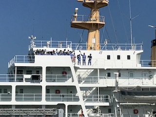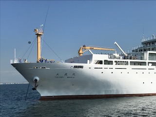 海技教育機構の練習船、大成丸とすれ違いました。たくさんの方に手を振ってもらいましたよ。