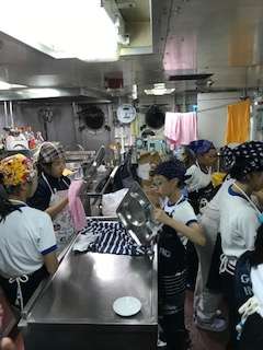 美味しい食事の後は、班ごとに分担して後片付けです。食器を洗う人、ゆすぐ人、ふく人と役割をしっかり決めて手際良く行えていたのでスタッフの方にも褒めていただきました。