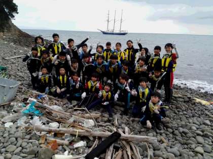 これからシュノーケルを装備して、海岸近くの海底の観察をします。その前に記念撮影。