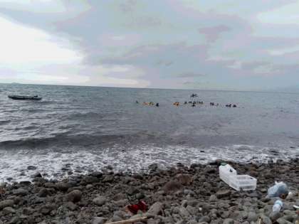 フィンを着けて、全員ボート付近まで泳いでいきます。