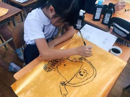 図画工作の授業では以前鑑賞した風神雷神を作品として制作しはじめています。