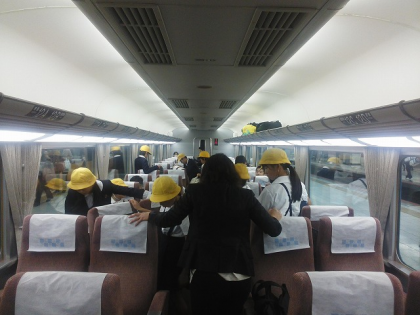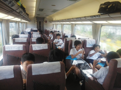 車内でトランプをしたり,友だちと談笑したり…。移動時間も楽しく過ごしています。