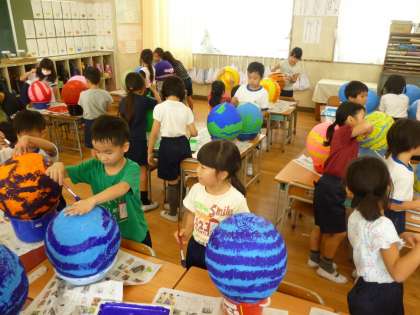 子どもたちはとても真剣な顔で色塗りをしていました。