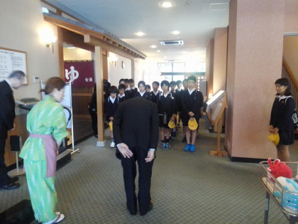 昨夜からお世話になった宿舎の方々に感謝の気持ちを込めて,閉舎式を行いました。