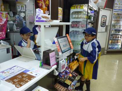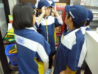 売り場を案内してもらったり、ユニホームを着てレジ打ちの体験をさせてもらったりしました。