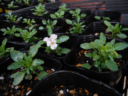 植えた時よりも葉の枚数が増え,大きくなってきました。中には,もう花が咲いているものも!