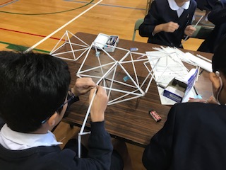 前回作成したトラス構造についての復習をした後、いよいよ各班で考えたテーマに沿ってデザインを描き始めました。