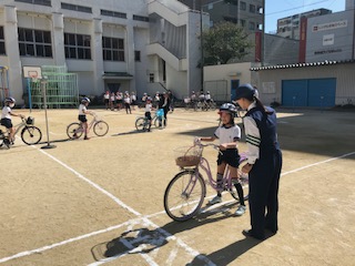 低学年に引き続き、高学年も大阪府警交通安全教育班の方々による交通安全教室を行いました。高学年は自転車の乗り方を中心に学習しました。日頃忘れてしまいがちな安全確認をもう一度しっかり意識して、安全な乗車を心がけましょう。大阪府警のみなさん、お忙しい中ありがとうございました。